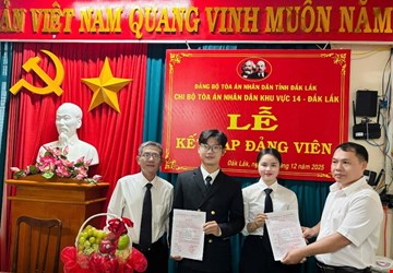 Thực hiện Quyết định của Đảng ủy Tòa án nhân dân tỉnh Đắk Lắk về việc kết nạp đảng viên mới, vào ngày 03/12/2025, Chi bộ Toà án nhân dân khu vực 14 - tỉnh Đắk Lắk đã tiến hành tổ chức Lễ kết nạp đảng...