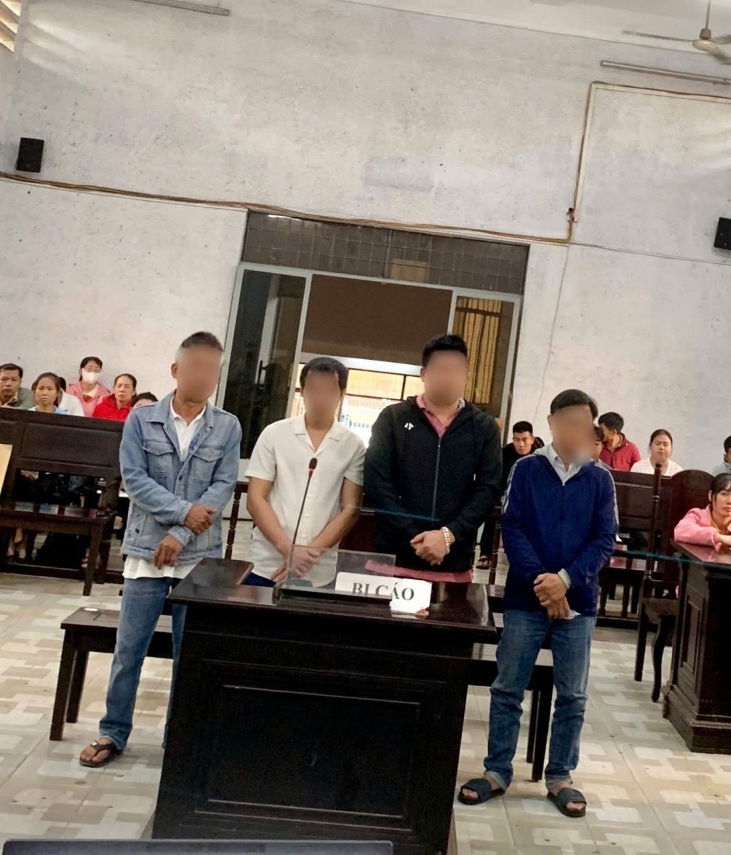 Các bị cáo Trần Văn Thành, Vũ Duy Tư, Đào Văn Thái, Nguyễn Văn Hảo tại phiên toà hình sự sơ thẩm ngày 23/9/2025