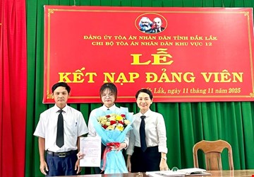 Thực hiện Quyết định của Đảng ủy Tòa án nhân dân tỉnh Đắk Lắk về việc kết nạp đảng viên mới, chiều ngày 11 tháng 11 năm 2025, Chi bộ Tòa án nhân dân khu vực 12 long trọng tổ chức Lễ kết nạp Đảng viên...