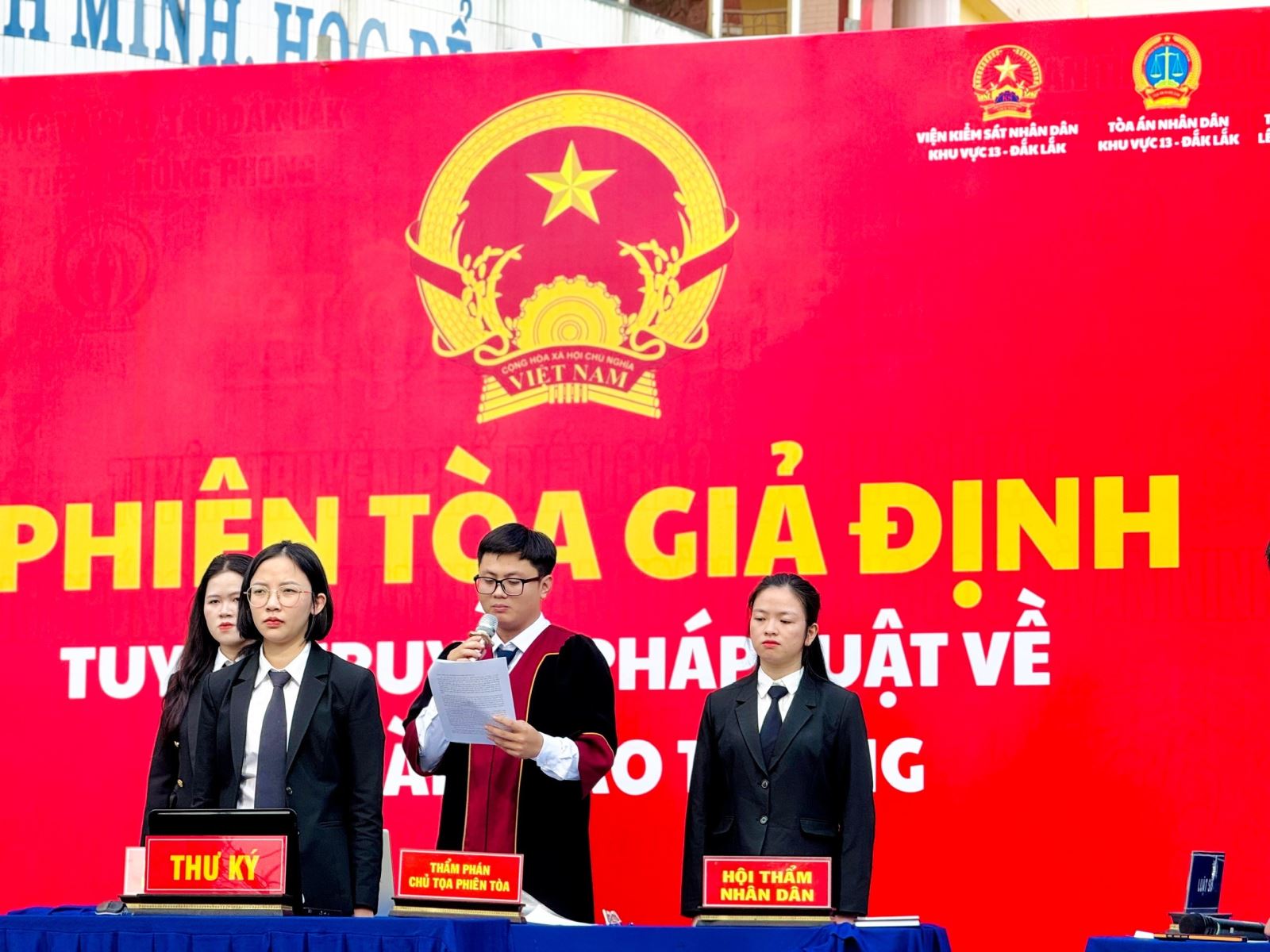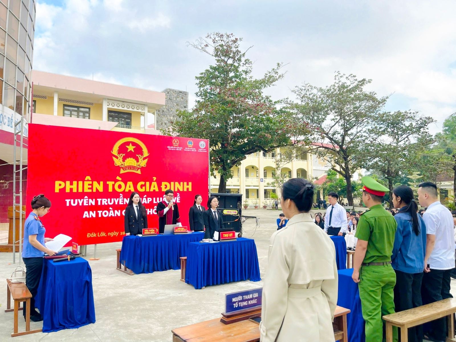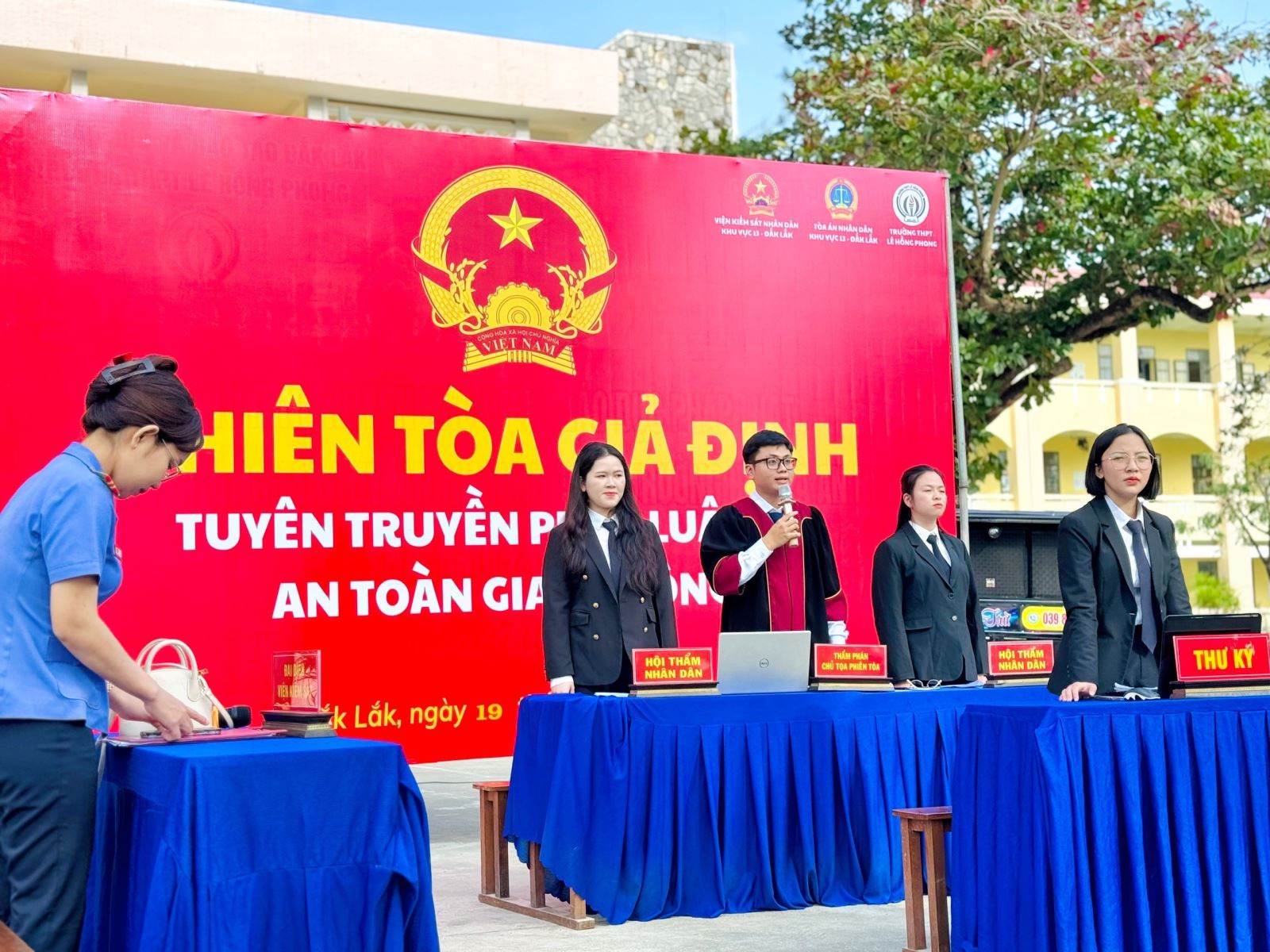 Được sự cho phép của Chi bộ Tòa án nhân dân khu vực 13 – Đắk Lắk, Chi bộ Viện kiểm sát nhân dân khu vực 13 – Đắk Lắk, Đoàn cơ sở Tòa án nhân dân tỉnh Đắk Lắk và Đoàn cơ sở Viện kiểm sát nhân dân tỉnh Đắk Lắk, Chi đoàn số VII - Tòa án nhân dân tỉnh Đắk Lắk và Chi đoàn Viện kiểm sát nhân dân khu vực 13 – Đắk Lắk phối hợp tổ chức Phiên tòa giả định tuyên truyền pháp luật về an toàn giao thông tại Trường THPT Lê Hồng Phong (Địa chỉ: Xã Tây Hòa, tỉnh Đắk Lắk).