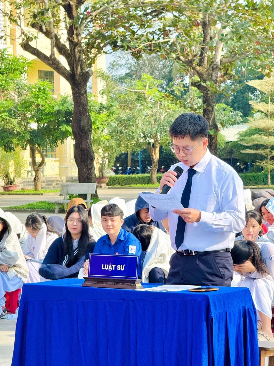 Qua các phần xét hỏi, luận tội, tranh luận và tuyên án, các đoàn viên đã tái hiện rõ ràng, logic quy trình tố tụng, đồng thời phân tích sâu sắc các quy định pháp luật hiện hành về ATGT (Luật Trật tự, an toàn giao thông đường bộ năm 2024), mức độ, hậu quả của hành vi vi phạm và trách nhiệm pháp lý phải chịu. Phiên tòa không chỉ mang tính giáo dục pháp luật mà còn tạo cảm giác chân thực, gần gũi, giúp các em học sinh thấm thía hơn về ý thức chấp hành pháp luật khi tham gia giao thông.