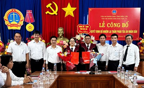 Sáng ngày 09/10/2025, tại Trụ sở Tòa án nhân dân (TAND) khu vực 15 – tỉnh Đắk Lắk, Đoàn công tác TAND tỉnh Đắk Lắk do ông Nguyễn Văn Chung, Bí thư Đảng ủy, Chánh án TAND tỉnh dẫn đầu, đã làm việc và công bố các quyết định về công tác cán bộ. Theo đó, TAND tỉnh đã công bố quyết định bổ nhiệm lại Thẩm phán bậc 1 đối với bà Bàn Thị Tiên và ông Bạch Văn Trinh.
