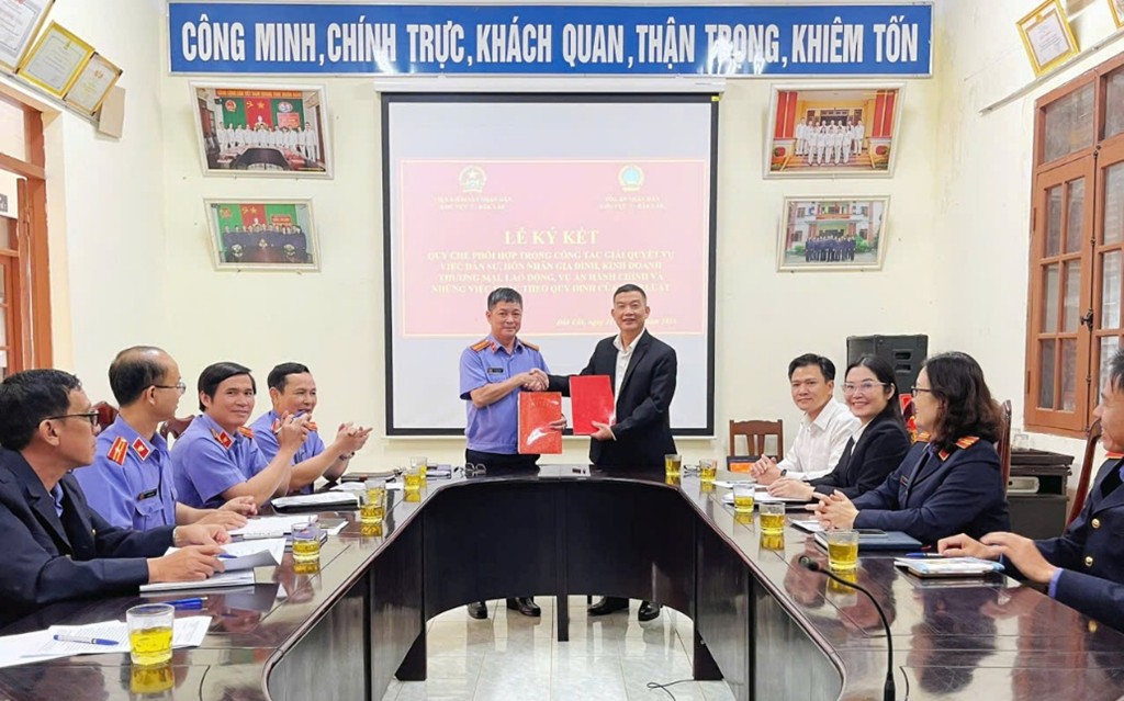 Ngày 31/12/2025, Tòa án nhân dân khu vực 7 – Đắk Lắk và Viện Kiểm sát nhân dân khu vực 7 – Đắk Lắk tổ chức Lễ ký kết Quy chế phối hợp trong công tác giải quyết và kiểm sát việc giải quyết các vụ việc dân sự, hôn nhân gia đình, kinh doanh thương mại, lao động, vụ án hành chính và những việc khác theo quy định của pháp luật.