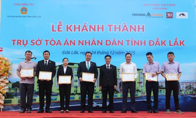 Ghi nhận thành tích đóng góp trong quá trình thực hiện dự án xây dựng Trụ sở TAND tỉnh Đắk Lắk, Chánh án Tòa án nhân dân tỉnh Đắk Lắk đã trao tặng “Giấy khen” cho 8 cá nhân (gồm 03 công chức thuộc TAND tỉnh Đắk Lắk và 05 cá nhân thuộc Nhà thầu thi công).