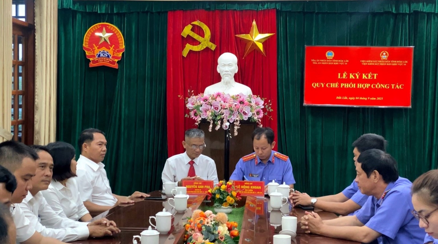 - TAND khu vực 14- Đắk Lắk và Viện kiểm sát nhân dân khu vực 14- Đắk Lắk ký kết quy chế phối hợp